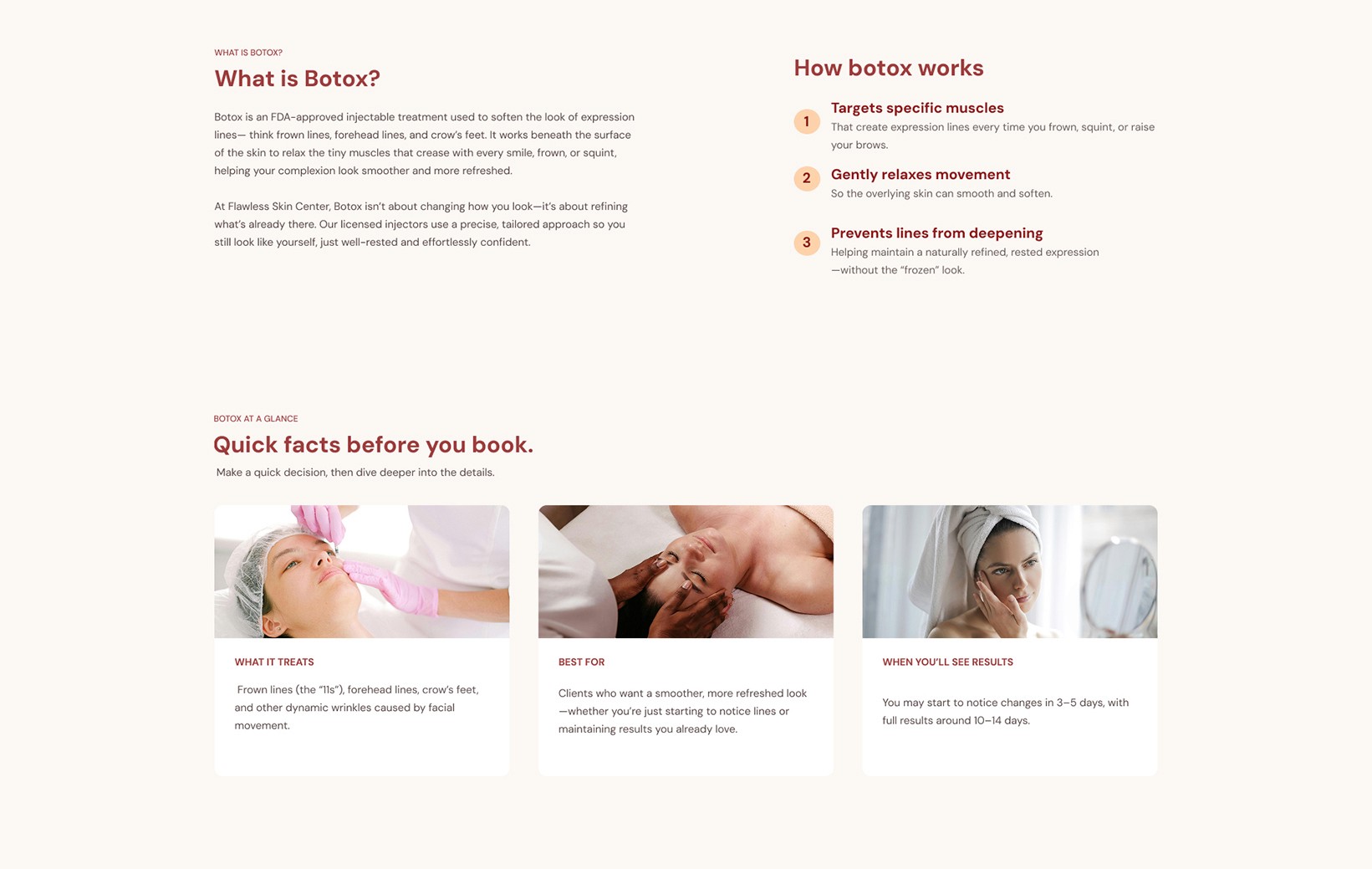 Landing page design for Flawless cosmetic center.