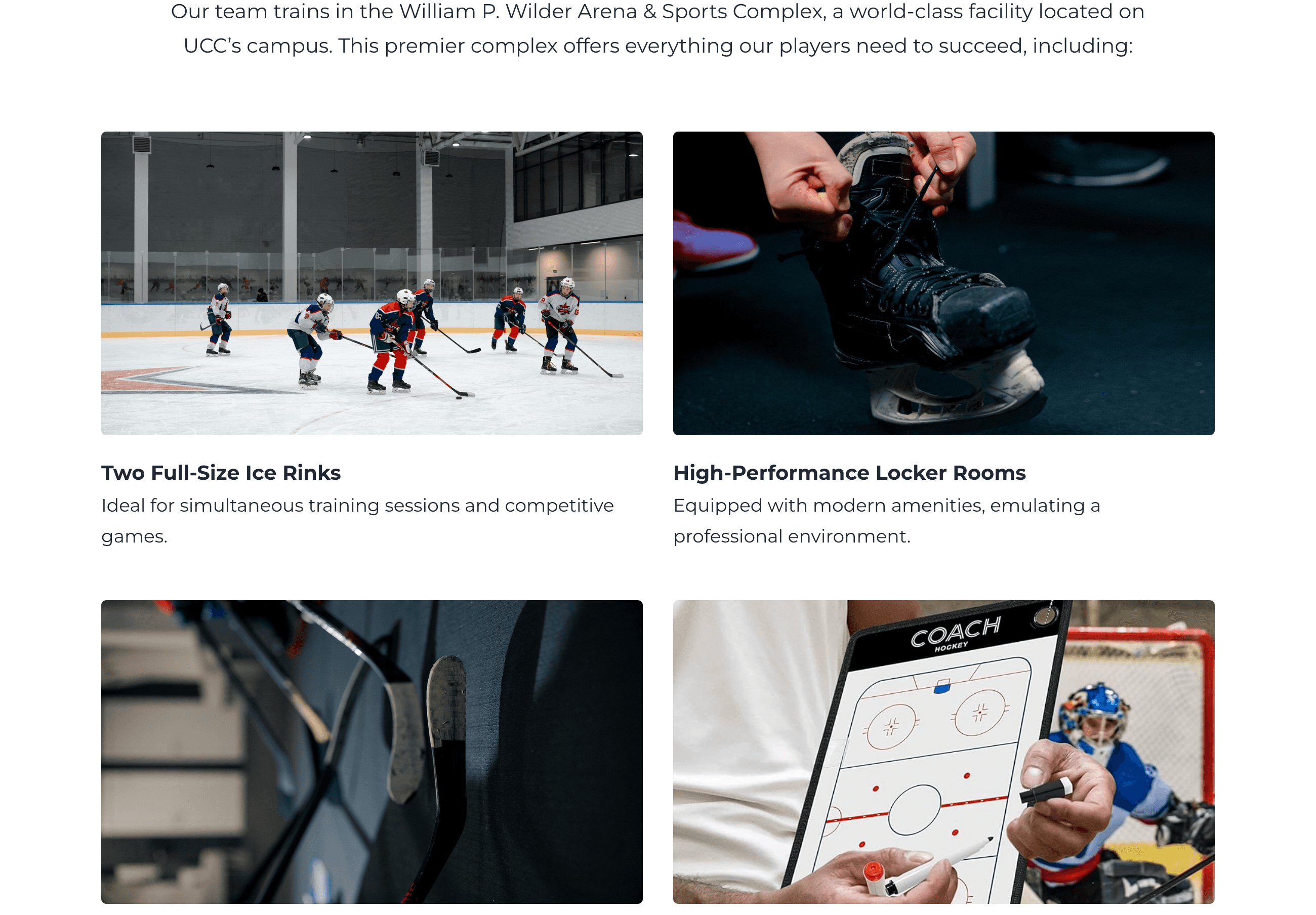 The UCC Hockey program has been increasingly successful in recent seasons, and they wanted to use that momentum to attract new talent while showcasing their teams’ results across different categories. They didn’t have a defined brand identity beyond what was already used on the main UCC websites, and they needed someone to handle everything, from domain and hosting setup to design, development, and even SEO optimization.